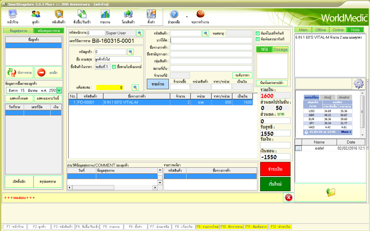 หน้าจอช่วยการขายมีระบบอัตราแลกเปลี่ยน (Exchange Rate) เพื่อช่วยระบุอัตราแลกเปลี่ยนสำหรับลูกค้าชาวต่างชาติที่มาซื้อด้วยเงินสกุลอื่น แบบเรียลไทม์ (ต้องเชื่อมต่ออินเตอร์เน็ต) มีหน้าจอหลัก (Main) จะแสดงโปรโมชั่นของสินค้านั้น เมื่อมีการคีย์สินค้านั้นขึ้นมาขาย ข้อมูลโปรโมชั่นก็จะแสดงในช่องให้ผู้ขายได้ทราบและให้ข้อมูลลูกค้าได้ทันที เช่น สินค้า A ถ้าซื้อครบ 1000 บาท ได้กระเป๋าผ้า แถม 1 อัน สินค้า A ซื้อ 2 แถม 1 เป็นต้น