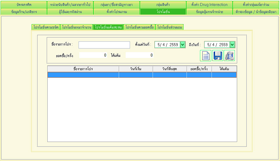 ระบบเตือนโปรโมชั่น ระบบการเตือนโปรโมชั่นหรือข้อมูลที่สำคัญสำหรับลูกค้า มีตัวหนังสือวิ่งในแถบสีเหลือง ตลอดเวลา เตือนผู้ขาย เช่น วิตามิน A ซื้อครบ 1000 บาท แถมกระเป๋าผ้า 1 ใบ หรือ ครีมบำรุงผิว ซื้อ 1 แถม 1 เป็นต้น